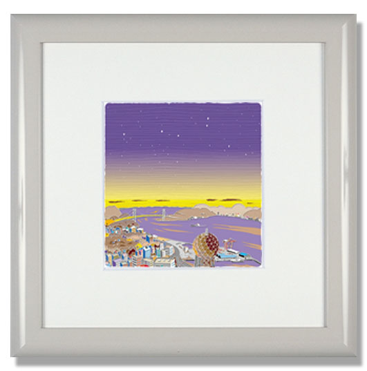 従来の手描きによるアナログの世界とデジタルが融合して開発された新しい版画技法です。顔料インクで高精細印刷機による高画質で刷られた作品は耐光性、色安定性に優れている為、色褪せることなく安心して絵の鑑賞ができます。また、作品ごとに限定枚数が決められ、作家版上サインとエンボス(空押し刻印)が入ります。作家による制作証明書も添付されます。