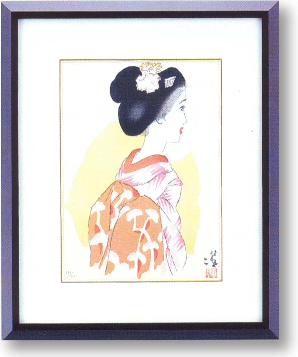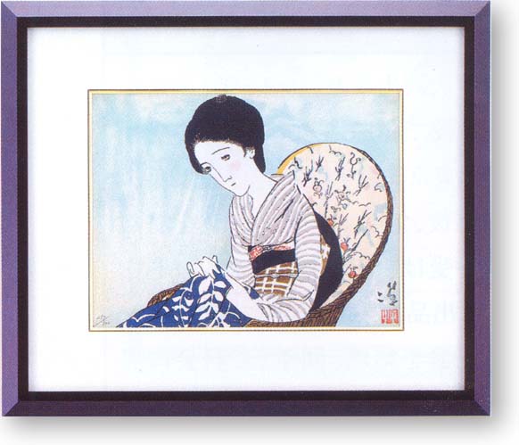 | Yumeji Takehisa 1884年、岡山に造り酒屋の次男として生まれる。 1902年早実入学後、1905年、「文章世界」コマ絵 一等となる。1906年には東京日々新聞に連載され、 1907年には岸たまきと結婚、読売新聞社に入社。 1909年、絵入り小唄集「春の巻」がベストセラーと なり、その後ロマンチックな夢二美人は、超人気と なり社会風潮にまでいたる。1915年、女子美生、 彦乃と結ばれる。1918年、「宵待草」全国に流行。 1934年、結核により49歳の生涯となる。 |